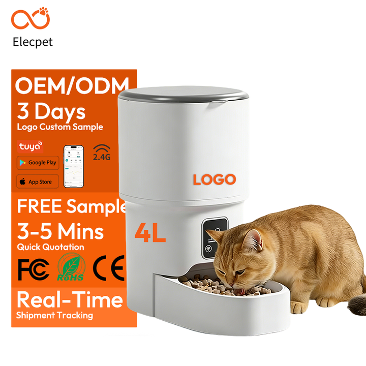 Dispenser di Cibo Automatico per Animali Domestici Elecpet OEM in Plastica Pet Perfect con Blocco Freschezza a 360°, Connessione Bluetooth e Controllo Tuya