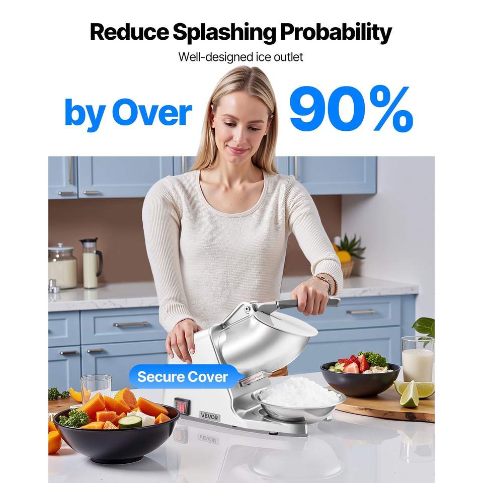Macchina Elettrica per Ghiaccio Tritato a 4 Lame, 129 kg/ora, in Acciaio Inossidabile, con Coperchio Ciotola, Modello 2022, Tritaghiaccio e Raschiaghiaccio