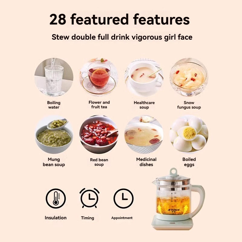 Electric Automatic Glass Health Kettle for Office Home Tea Cooking Herbal Heating and Water Boiling