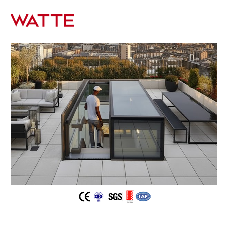 Finestra Scorrevole Elettrica a L in Alluminio con Taglio Termico per Tetto in Vetro, Ideale per Accesso al Tetto di Edifici Moderni e Scale