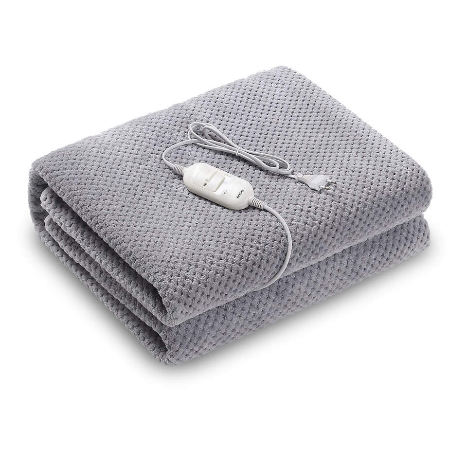 Coperta Elettrica 150 x 80 Cm 60W Grigia in Lana Corallo e Poliestere Riscaldante per Uso Letto
