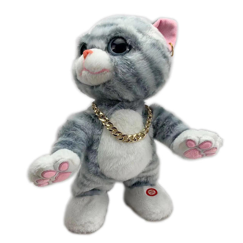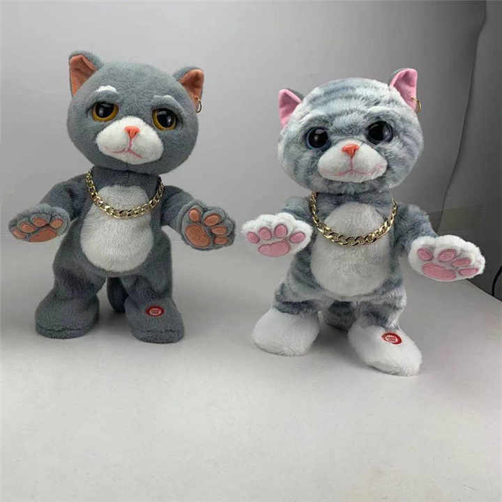 Giocattolo elettrico di peluche di gatto che canta parlando a piedi coniglietto di pasqua giocattoli di peluche regalo interattivo per bambini