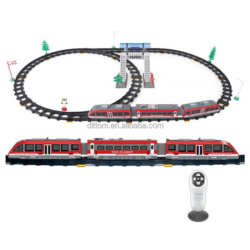 Binari del treno elettrico fai da te Slot per auto giocattoli bidirezionali RC treni della metropolitana a infrarossi a due vie RC con ponti a spina di pesce Set ferroviario