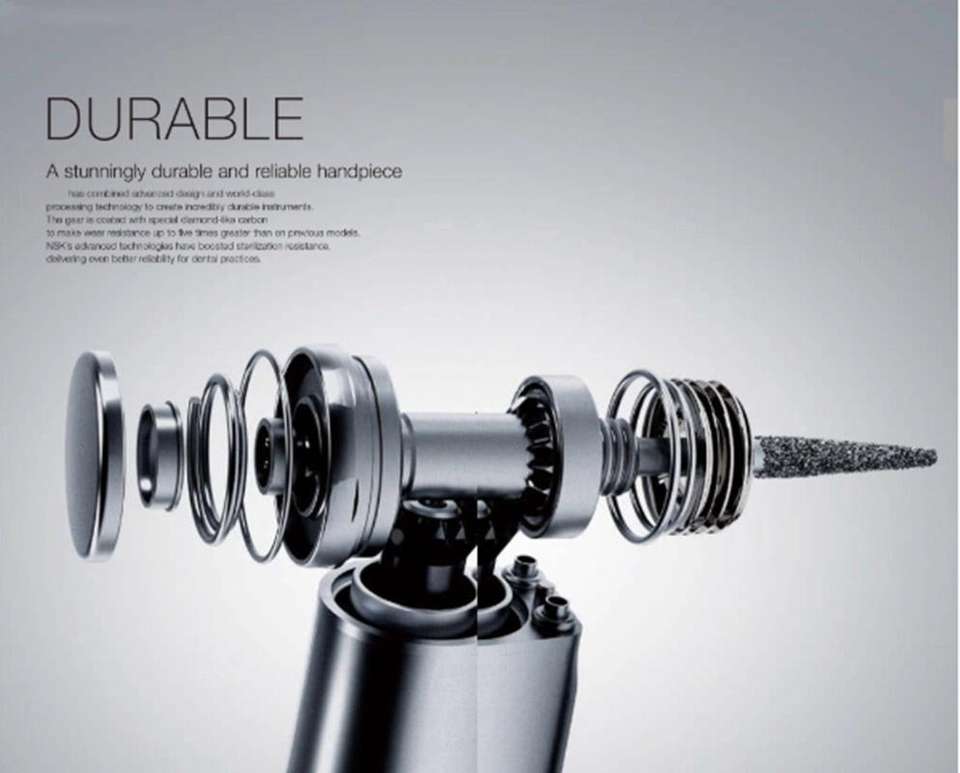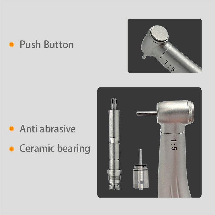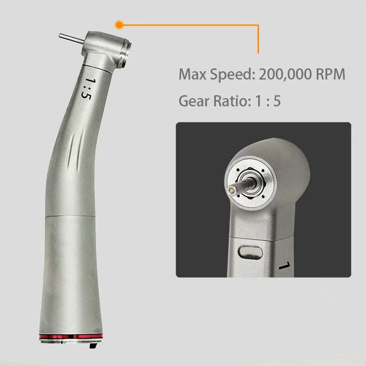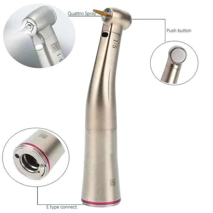Manipolo Dentale Elettrico 1:5 con Aumento di Velocità, Spray Interno, Fibra Ottica, Contrangolo in Acciaio con Pulsante a Pressione e Cuscinetto in Ceramica GA15