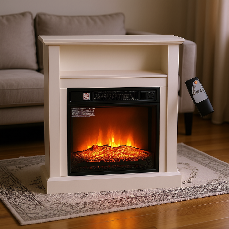 Caminetto Elettrico Bianco da 27 Pollici Autoportante con Telecomando, Effetto Fiamma Realistico, Riscaldamento Domestico