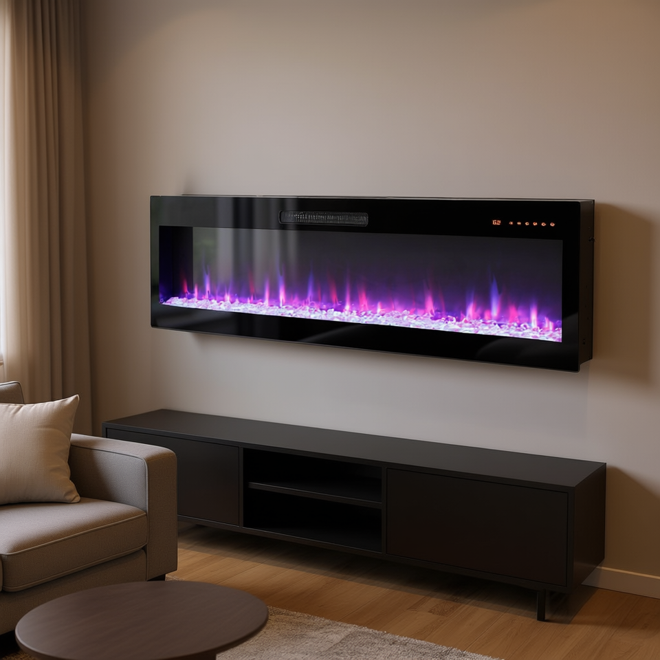 Caminetto Elettrico da Incasso a Parete da 60 Pollici con WiFi e Telecomando