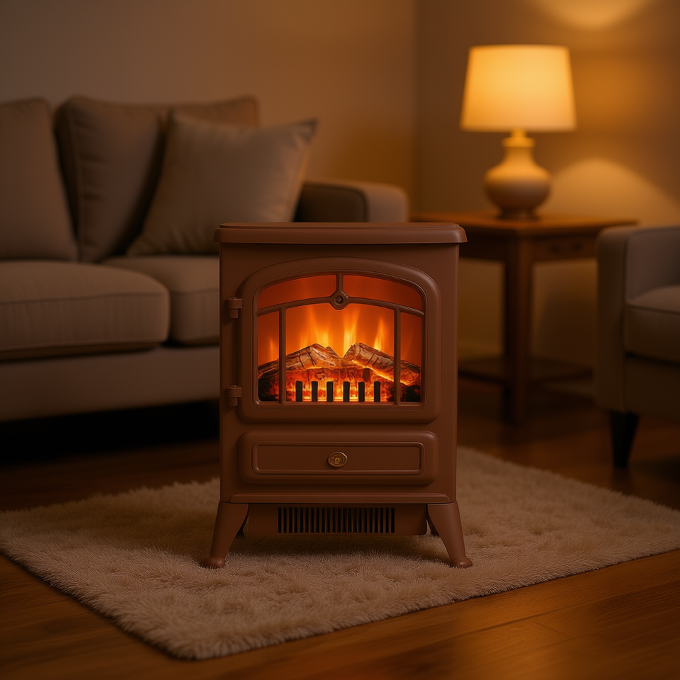 Electric Fireplace Heater 1500W 5000-9999 BTU/h Realistic Flame Effect Home Heating Floor Mount Metal Construction