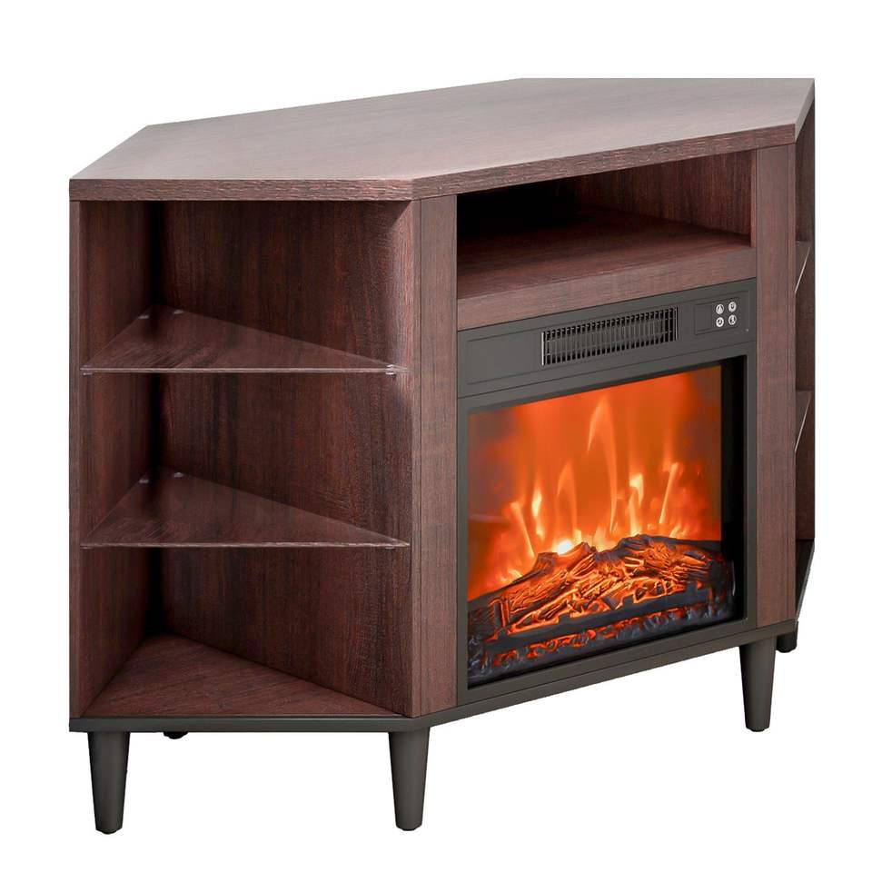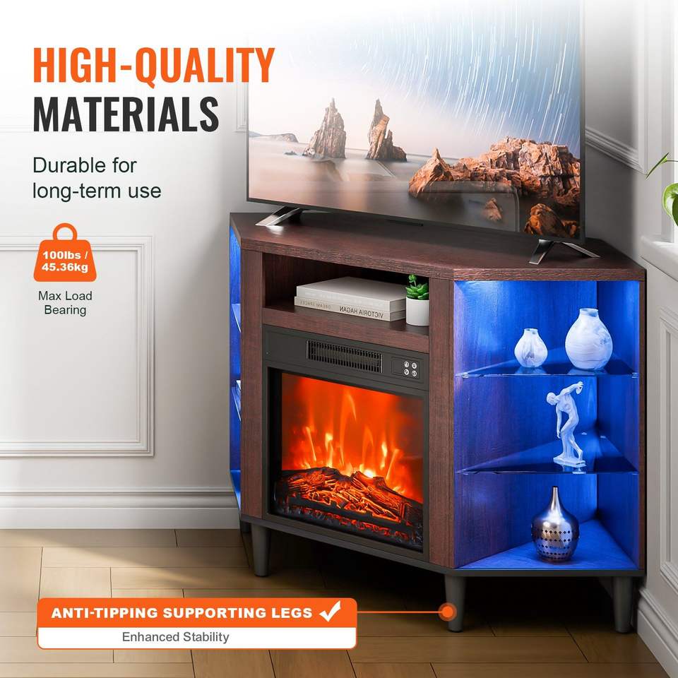 Mobile TV ad Angolo con Caminetto Elettrico e 20 Luci LED, Design Vintage per TV fino a 50 Pollici