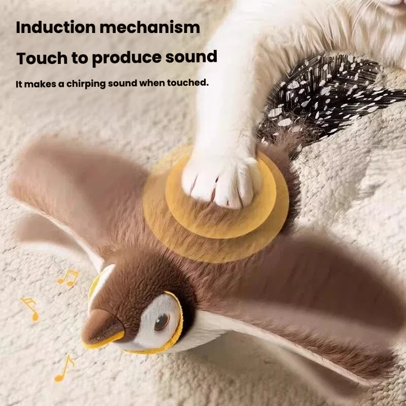 Giocattolo Elettrico per Gatti a Forma di Uccello con Ali Automatiche e Suono Realistico, in Poliestere per Esercizio e Gioco Indoor
