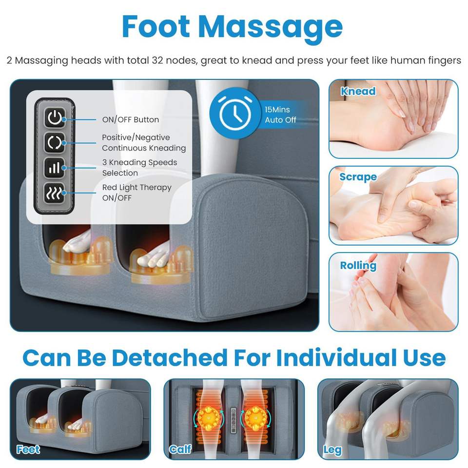 Tappetino Massaggiante Elettrico per Tutto il Corpo con Riscaldamento e Vibrazione, Base Antiscivolo, Cuscino per Collo, Piedi, Schiena e Lombare, Rivestimento in Tessuto Grigio