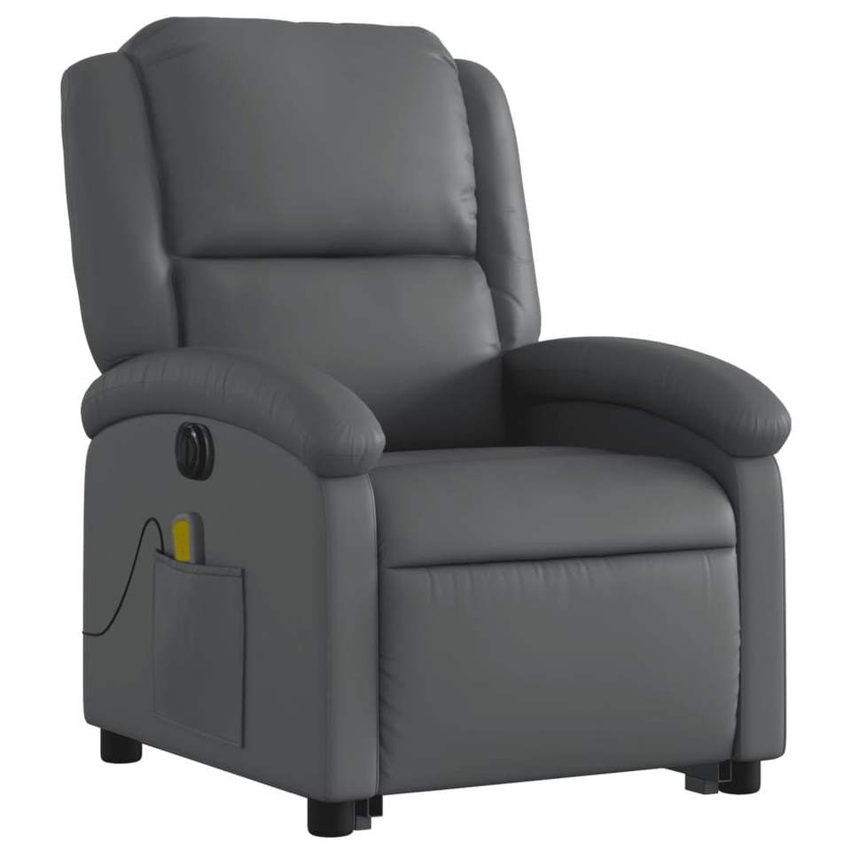 Poltrona Massaggiante Elettrica Reclinabile in Ecopelle Grigia per Uso Domestico