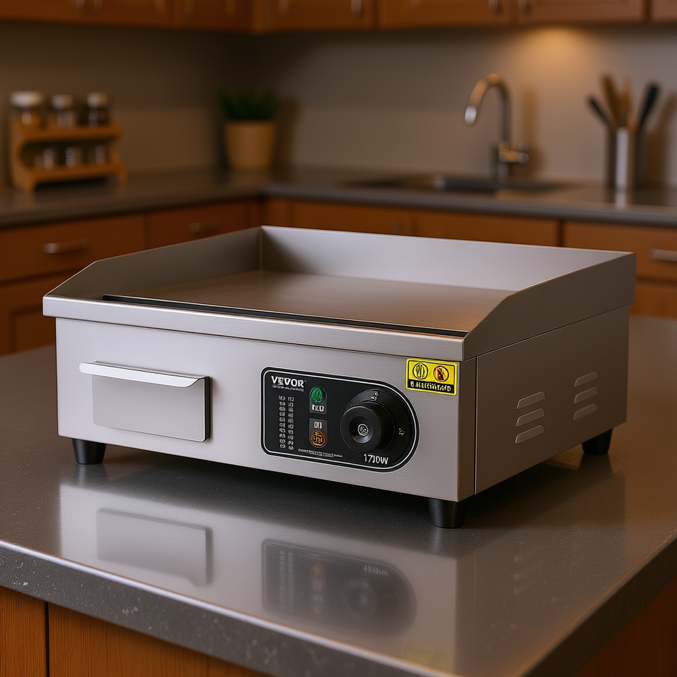 Piastra Elettrica Professionale 45x30cm in Acciaio Inox con Temperatura Regolabile 1700W