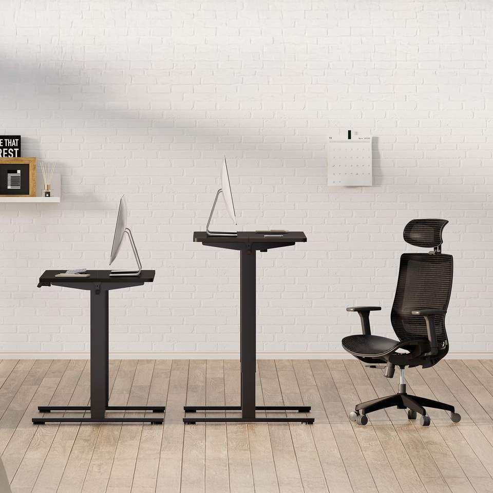 Electric Home Office Computer Workstation Adjustable Height Standing Desk with Two-Piece 55 X Tabletop Sit Stand Desk