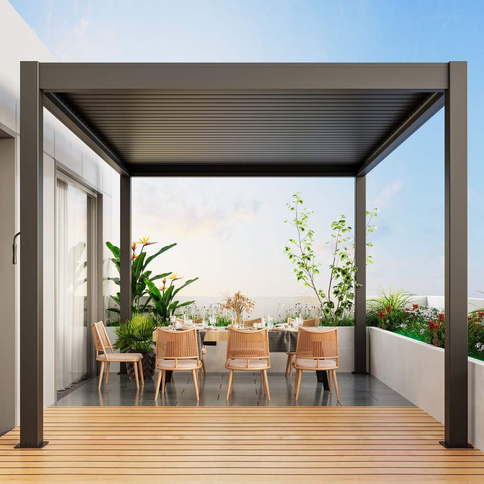 Tenda Parasole Elettrica a Lamelle con Luce LED e Telecomando, Tapparelle Multifunzione per Patio, Pergola e Gazebo