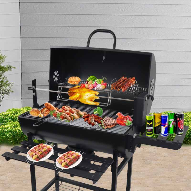 Electric Motor Rotisserie Roast Chicken Grill American Style Trolley Charcoal Barrel Bbq Grill