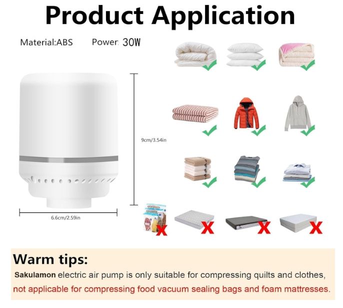 Electric Pump for Vacuum Seal Bags Compression Clothing Quilts and Storage for Most Wardrobe Use