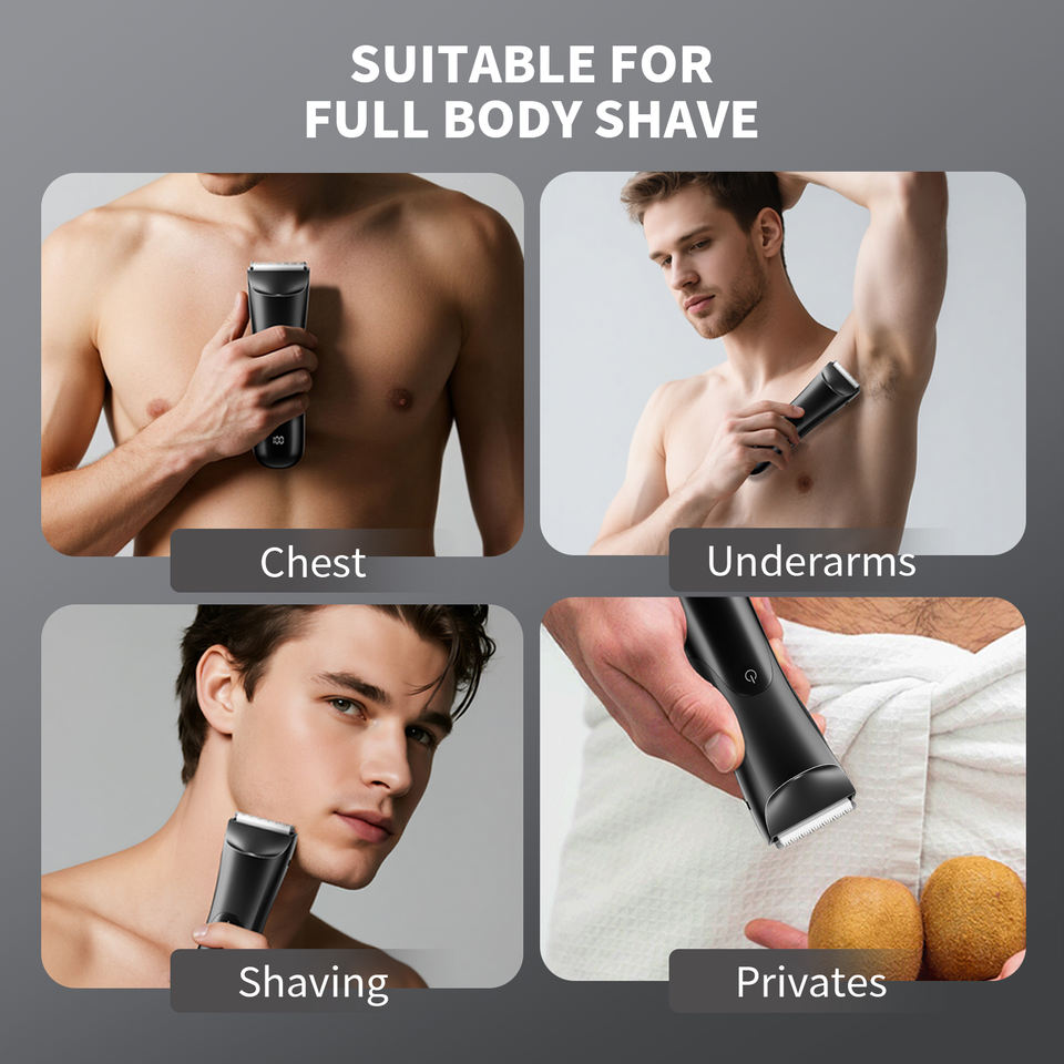 Rasoio Elettrico per il Corpo, Trimmer per Uomo e Donna, Impermeabile, per Inguine, Braccia, Schiena, Gambe e Petto, Depilatore Indolore