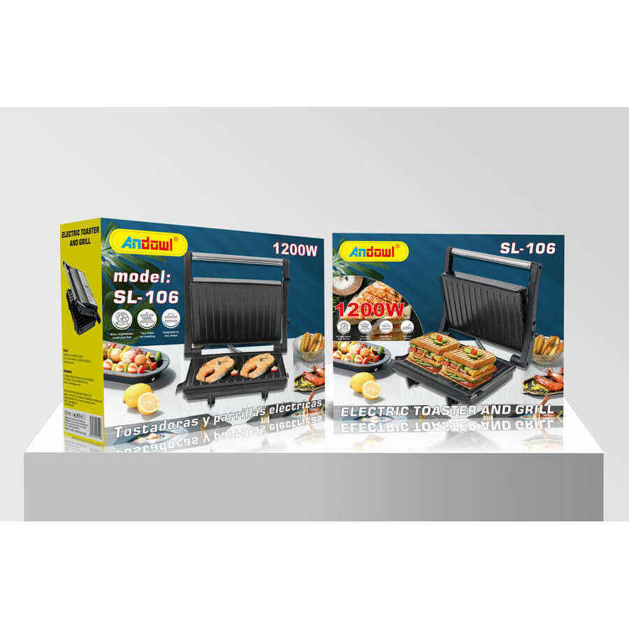 Andowl Piastra Elettrica per Sandwich 1200W con Piastre Intercambiabili Antiaderenti, Elettrodomestico da Cucina Modello SL-106