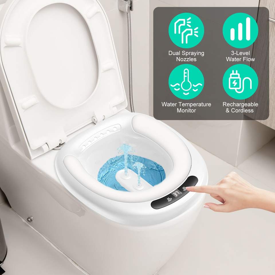 Vasca Elettrica per Sitz Bath con Doppio Ugello e 3 Livelli di Flusso d'Acqua, per Cura Post-Parto, Vasca per Sali da Bagno da Posizionare sul WC