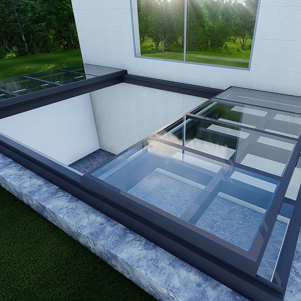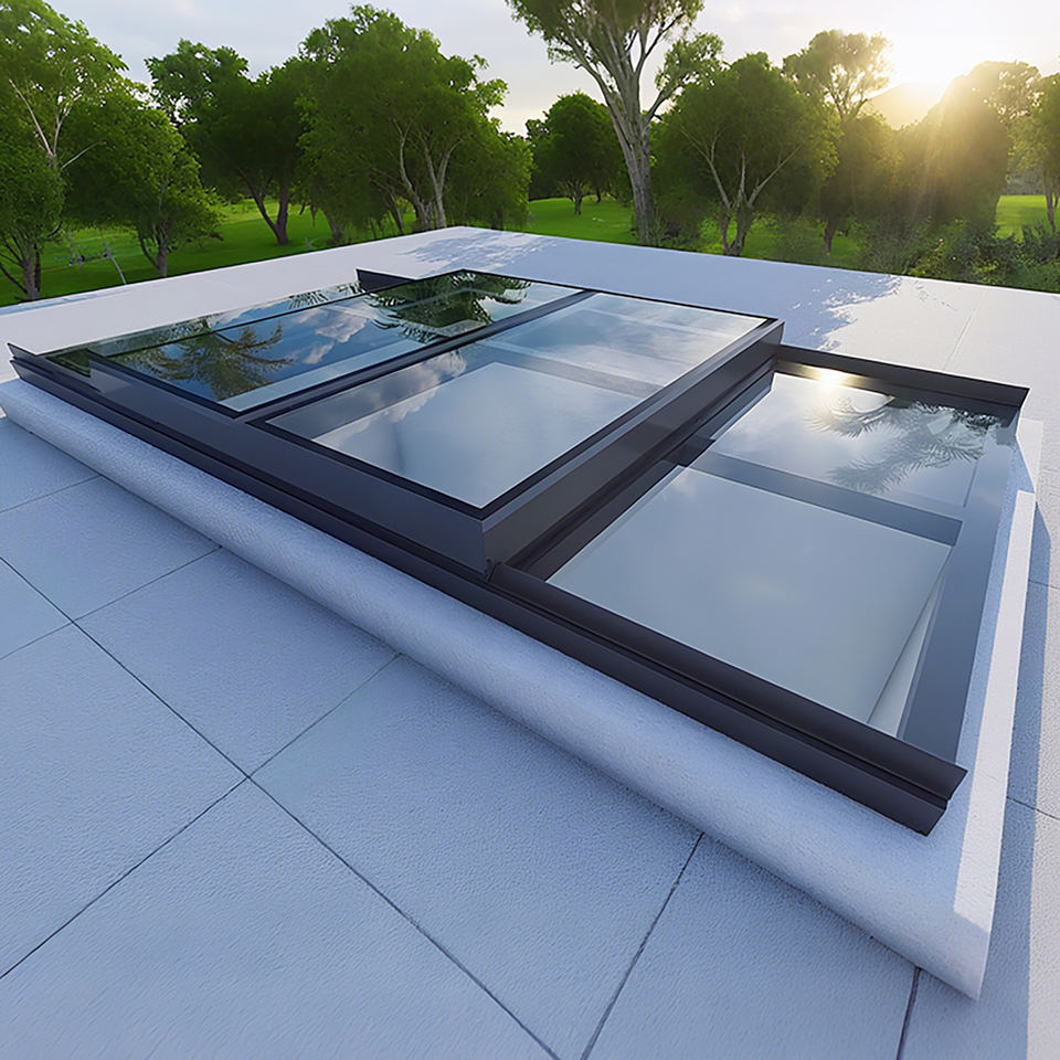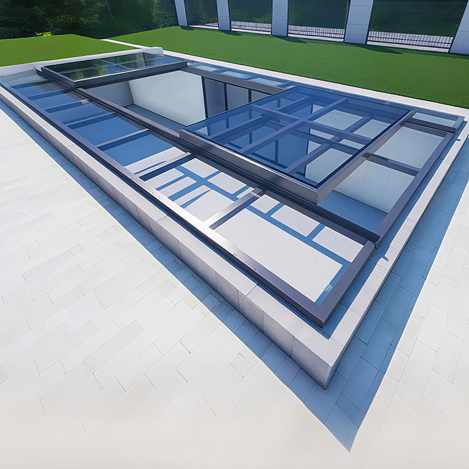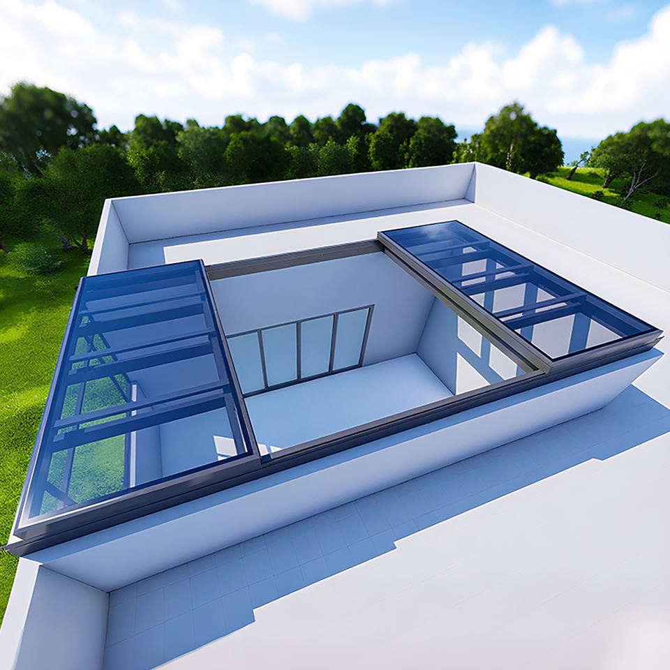 Electric Sliding Double Glazing Glass Panel Roof Systems Retractable Overlapping Skylight for Rooftop Stair Exit Window