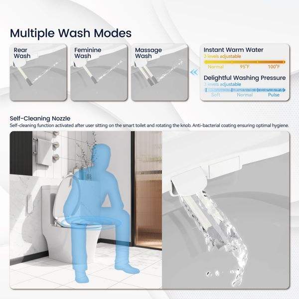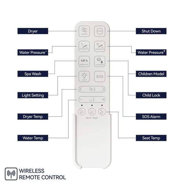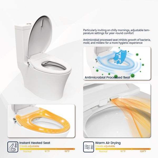 Electric Smart Toilet Seat Water Air Dryer Heated Sensor Slow Closing Cover Strong Weak Massage Cleaning Night Light Remote