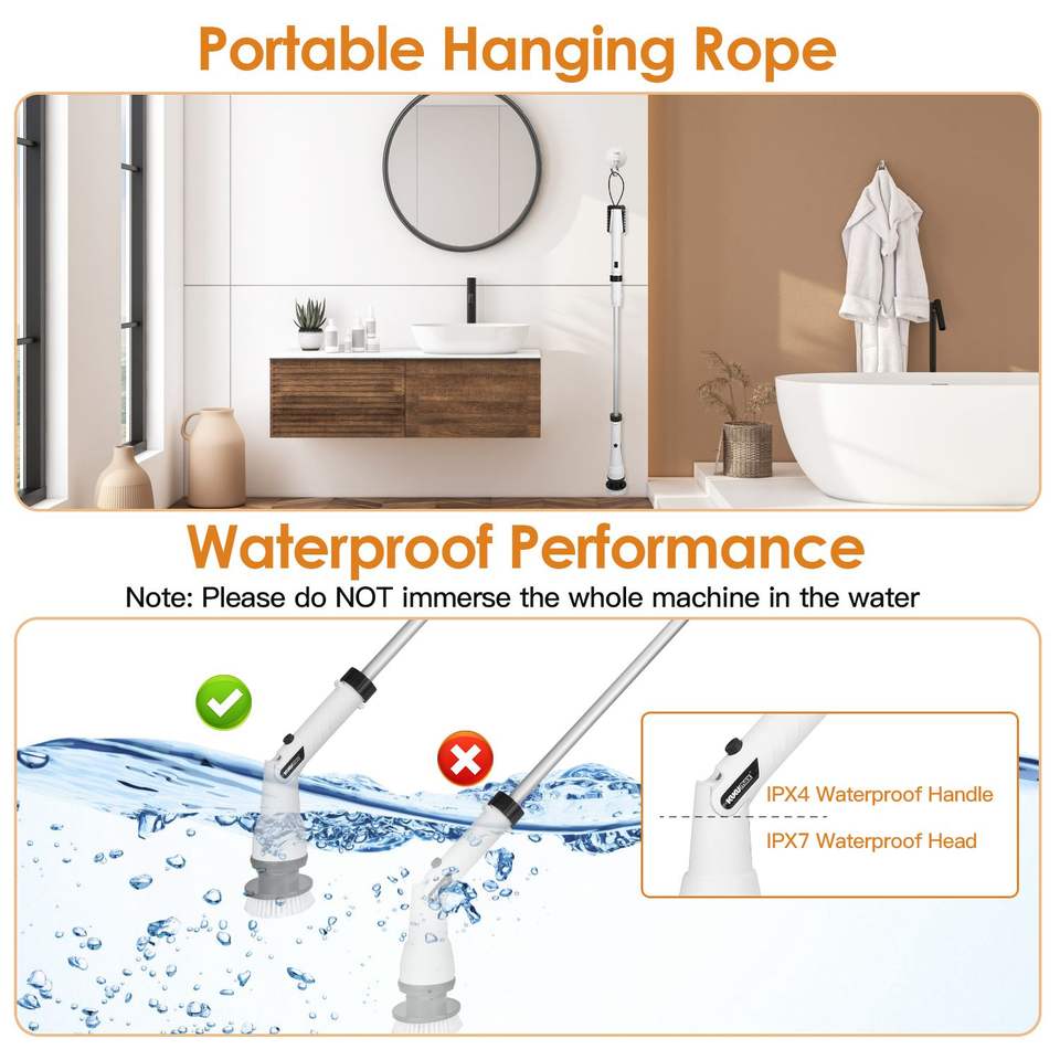 Spazzola Elettrica Rotante Senza Fili Ricaricabile con 4 Testine Sostituibili per la Pulizia del Bagno
