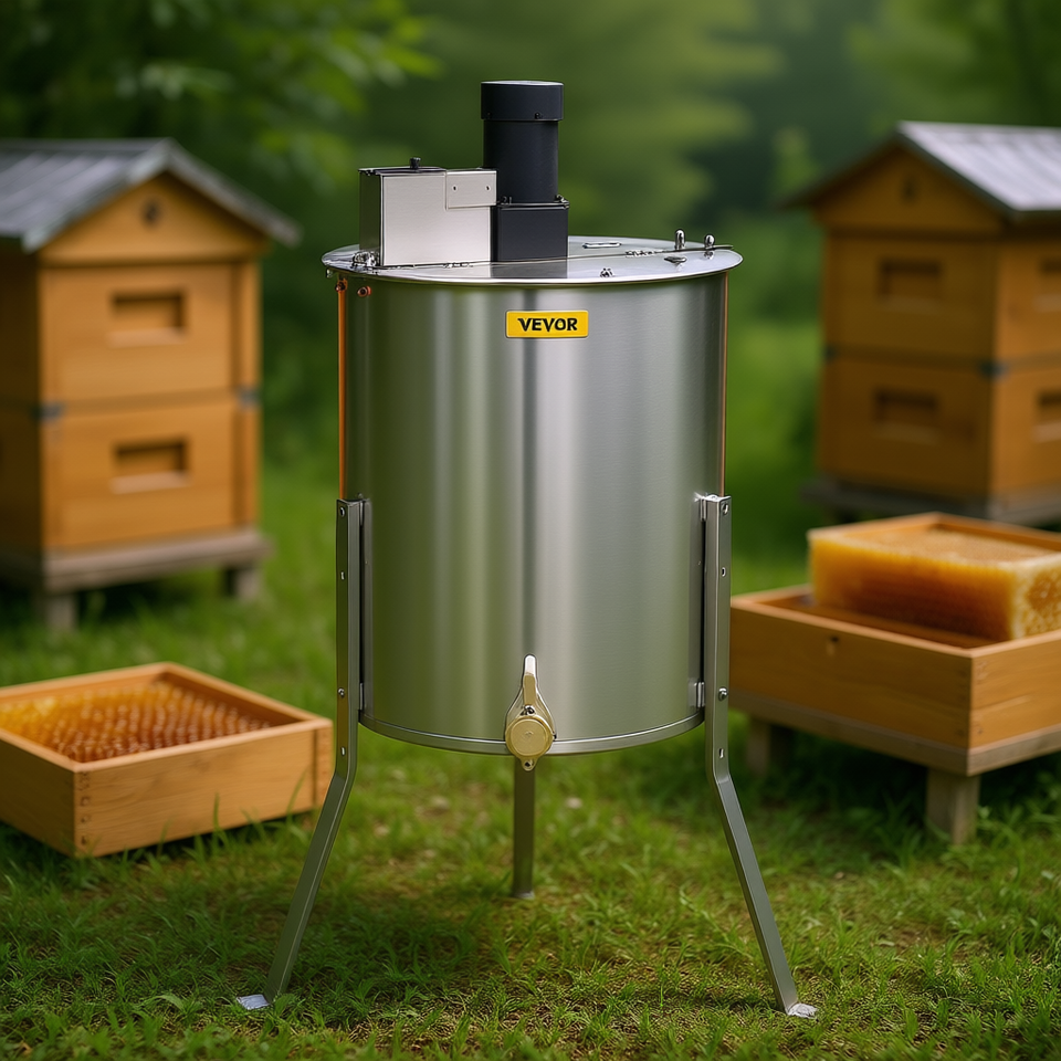 Smielatore Elettrico in Acciaio Inossidabile a 4/8 Telai, con Supporto Regolabile, Attrezzatura Apistica, Centrifuga per Miele, Tamburo per Favi