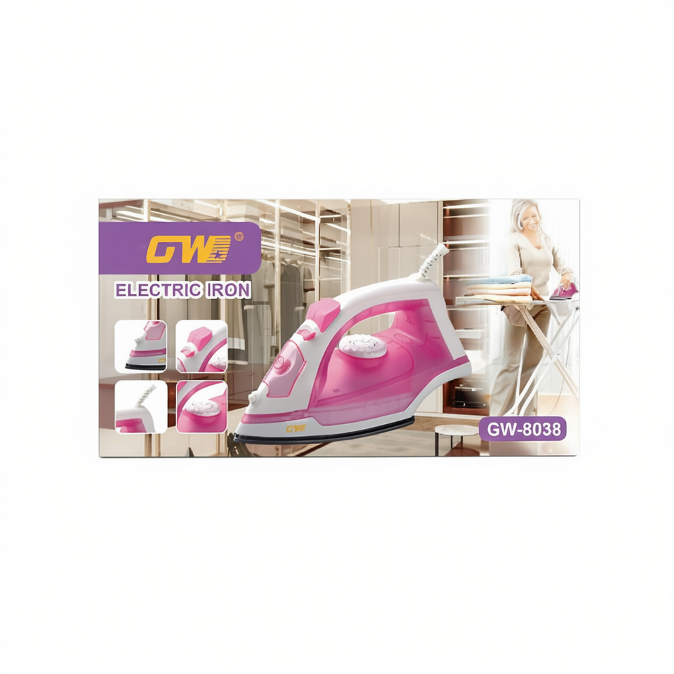 Ferro da Stiro Elettrico Gw 1200W con Piastra in Acciaio Inox, Ferro da Stiro a Vapore per Uso Domestico Modello Gw-8038
