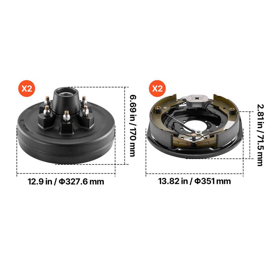 Kit Freni Elettrici per Rimorchio 12 x 2 Pollici Auto-Regolanti con Piastra di Supporto Assale da 6000 Libbre, 1 Paio per Riparazione Rimorchio