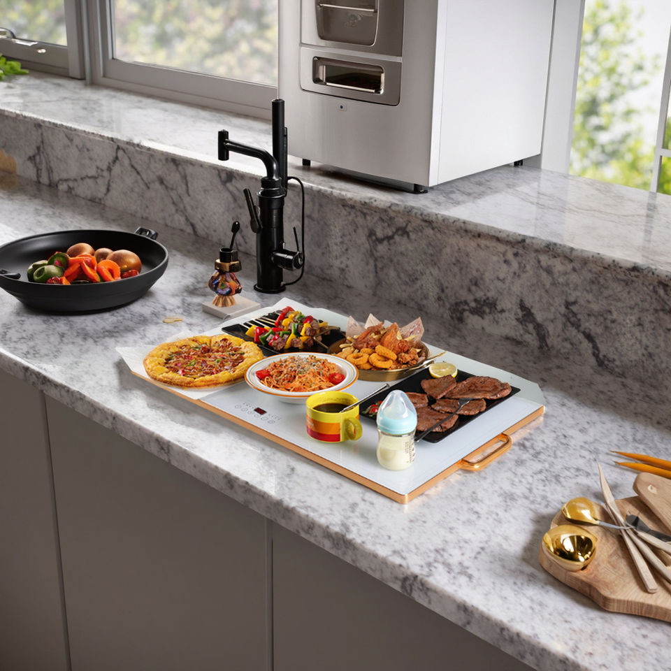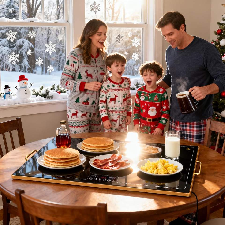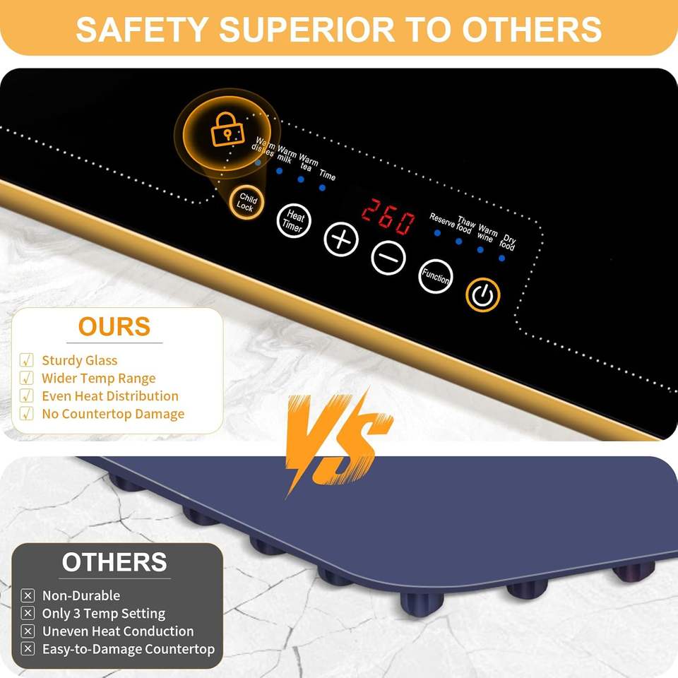 Scaldavivande Elettrico con Piano in Vetro, Temperatura e Timer Regolabili, Ideale per Feste, Shabbat e Uso Quotidiano