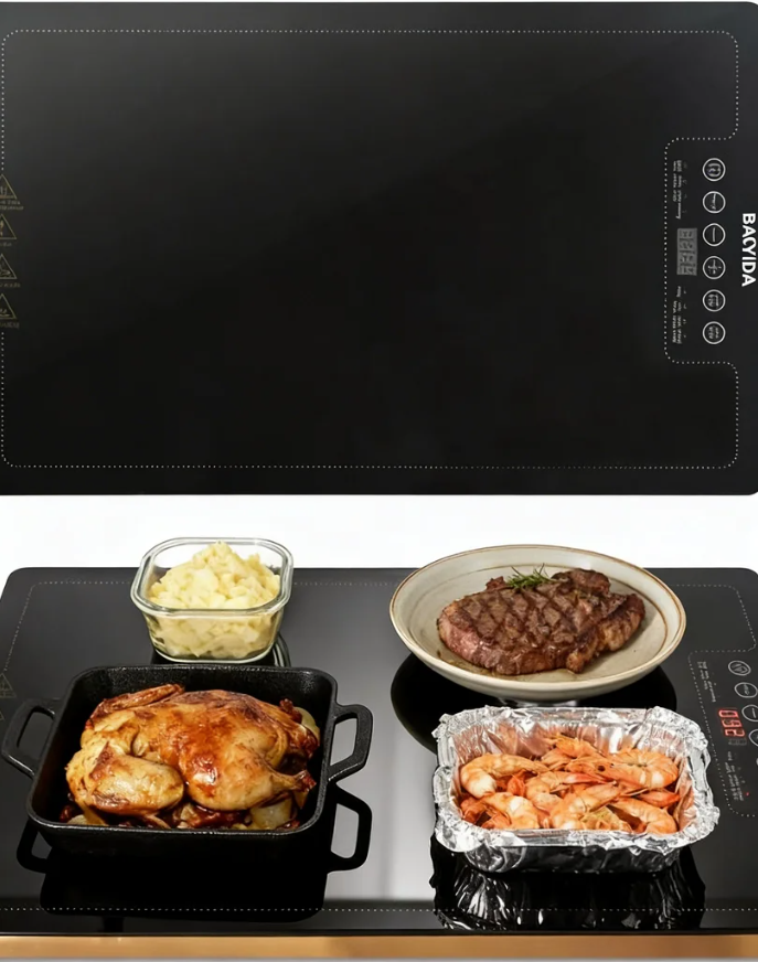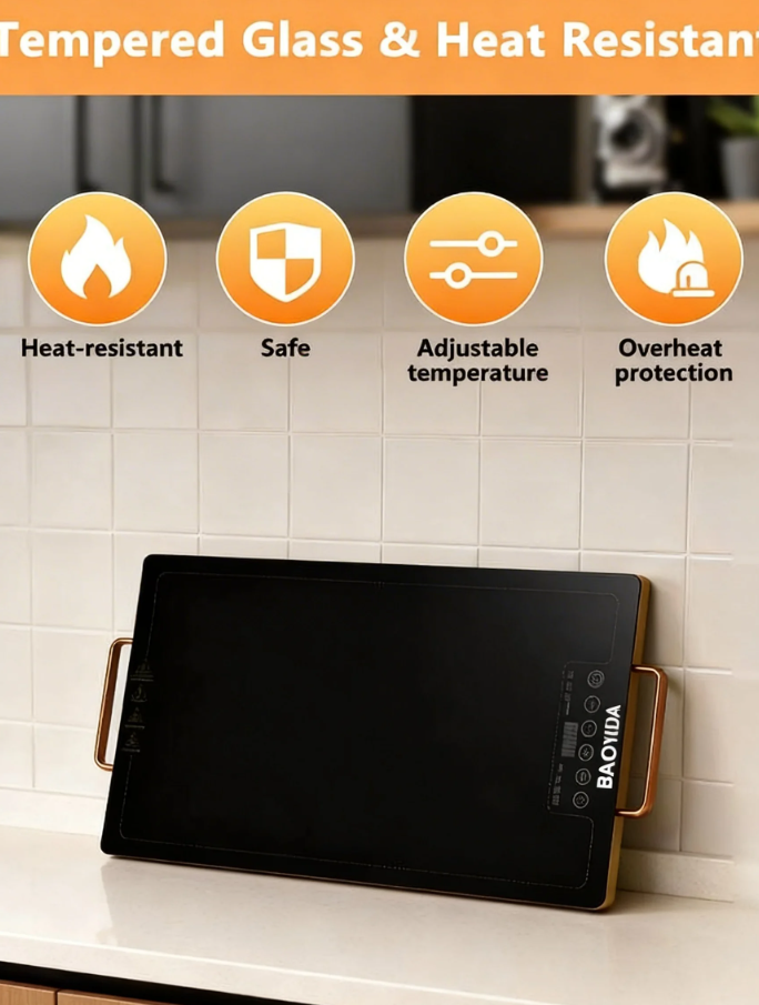 Scaldavivande Elettrico con Piano in Vetro, Riscaldamento a Spirale, Temperatura Regolabile, Timer, per Esterni, a Risparmio Energetico, in Acciaio Inossidabile, per Uso Domestico