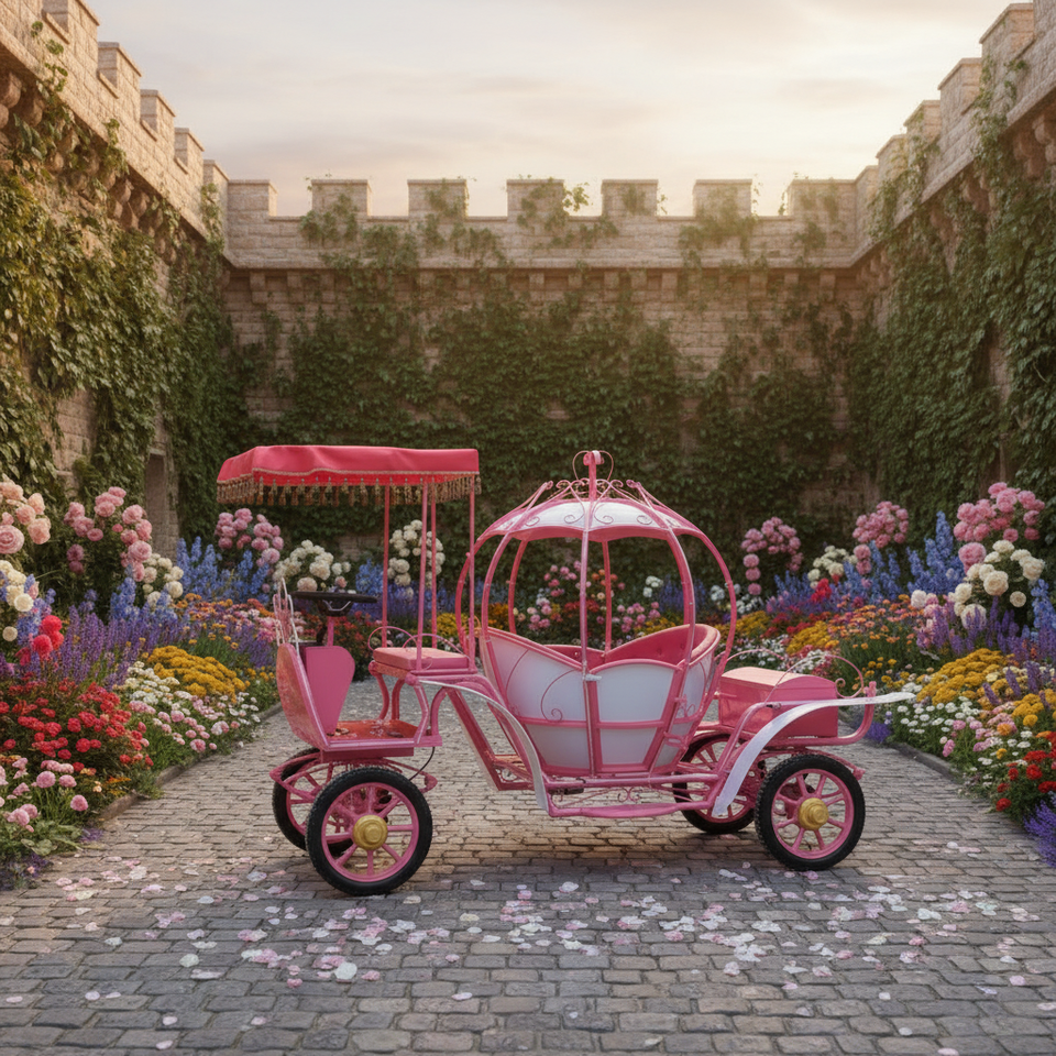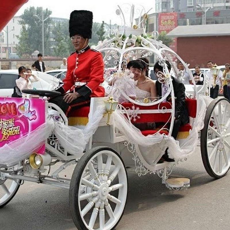 Carrozza Elettrica Personalizzabile per Matrimoni, Romantica Carrozza Dorata con Cavalli, Carrozza Natalizia a Forma di Zucca