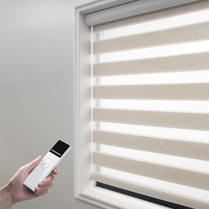 Tenda a rullo persiana zebra automatica a doppio strato, senza fili, con telecomando elettrico, per protezione solare e oscurante.