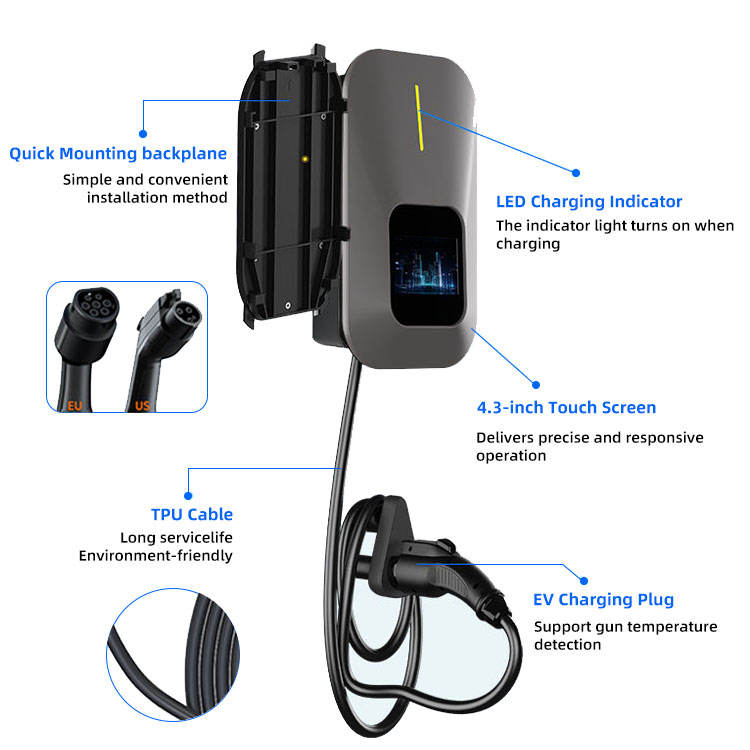 Electrly CE Certification Wallbox 7kW AC Ev Charger Weatherproof 5m Long Cable Electric Modbus Car 16a\32a EV Charging