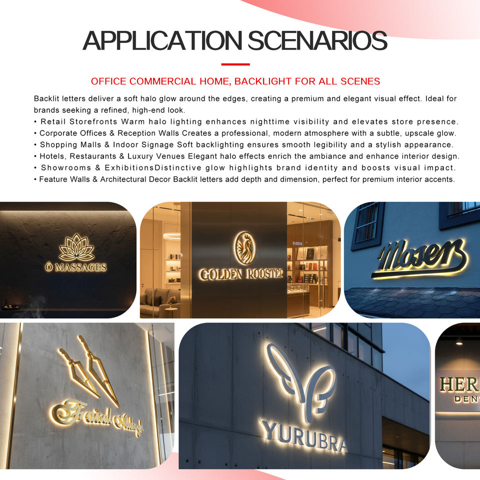 Segnaletica elettronica in acciaio inox oro logo retroilluminato lettere per nome digital store sign