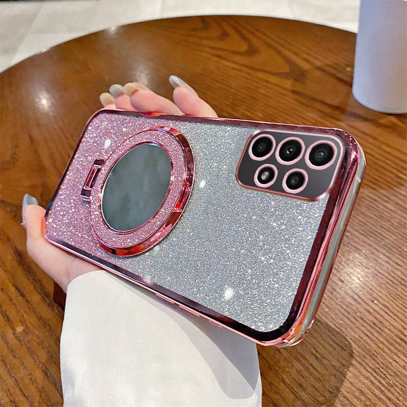 Placcato Flash polvere gradiente staffa magnetica specchio Glitter custodia del telefono per Samsung Galaxy A05S A15 A12 A25 A05 Cover