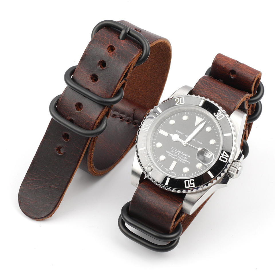 Cinturino in pelle lunga e traspirante con fibbia nera smerigliata elettrolitica con cinturino in pelle di vacchetta incrinata 18mm