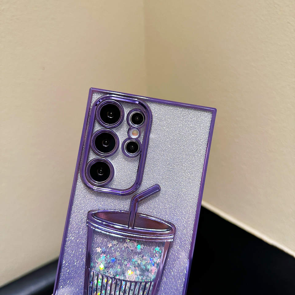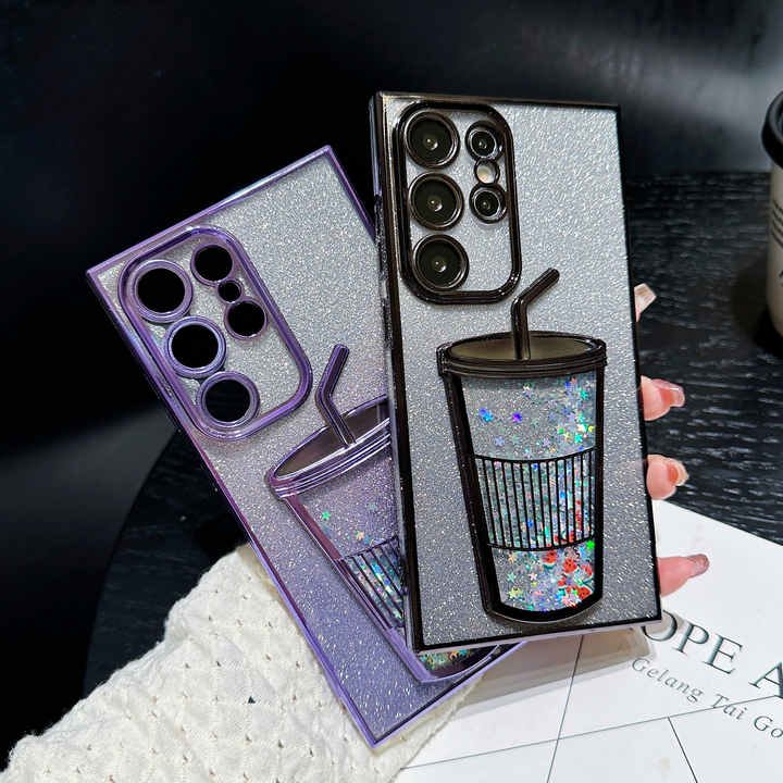 Cover per tazze da tè con paillettes di frutta e paillettes dinamiche per Samsung Galaxy S22 S23 S24 Ultra latte