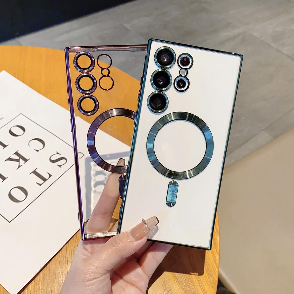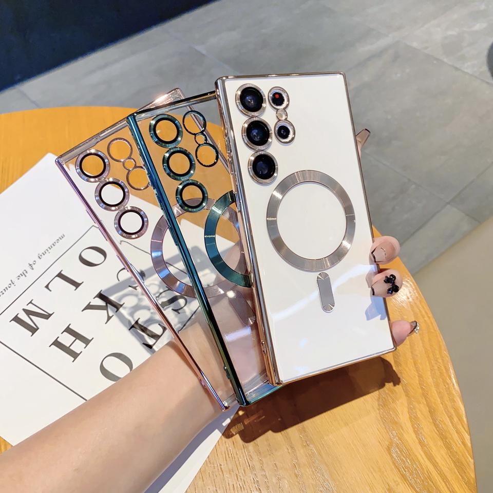 Cassa del telefono di attrazione magnetica elettrolitica con pellicola dell'obiettivo per Samsung S20 S21 S22 S23 S24 S25 ultra A15 A55 Anti-caduta cover