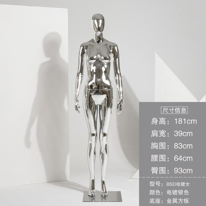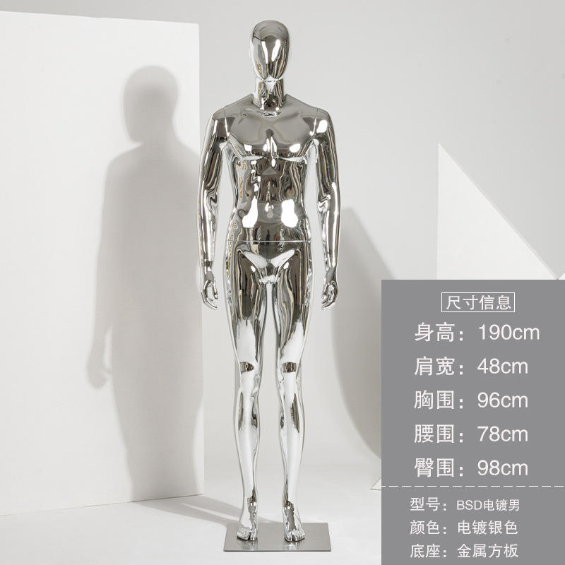 Electroplated Silver Fiberglass Full Body Mannequin Clothing Store Women Display Frame Male Female Couple Mannequin Display