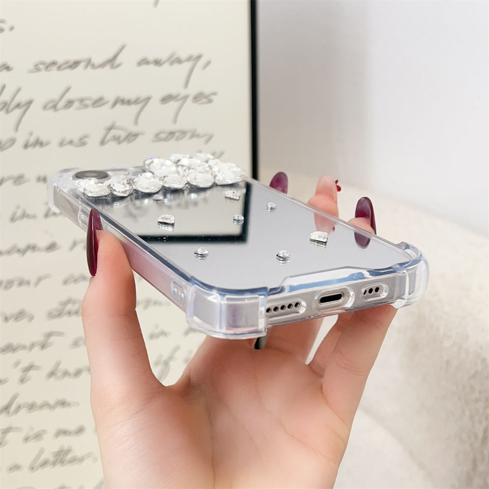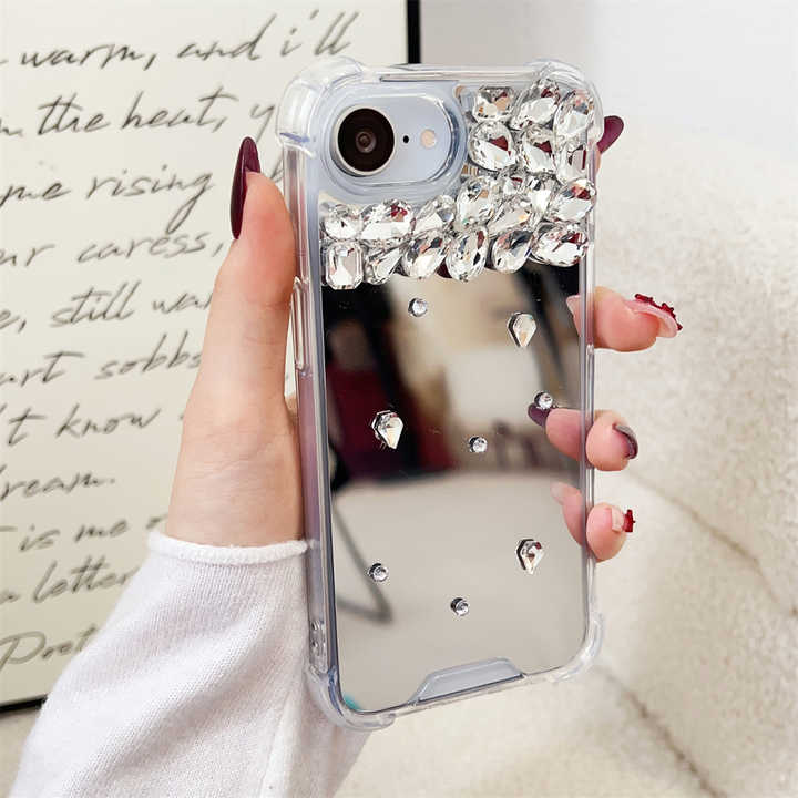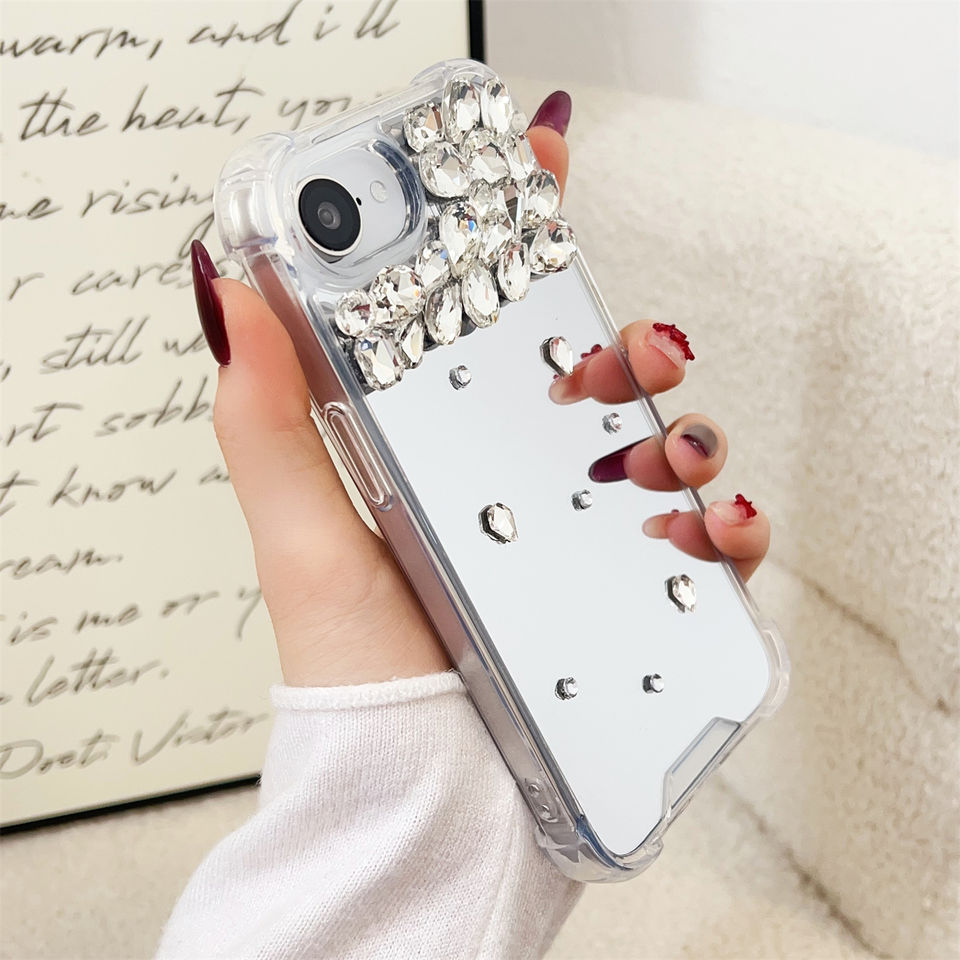 Electroplating Mirror Makeup Blingbling Crystal Diamond Shockproof Corner Cover for iPhone 16E for Samsung S25EDGE Mobile Phone