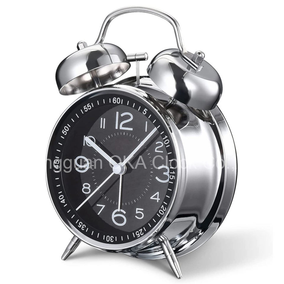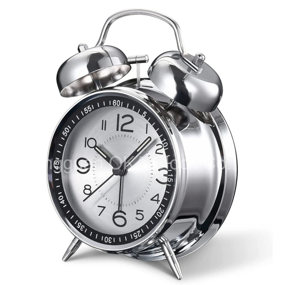 Sveglia Retrò con Suoneria Elettroplaccata Silenziosa Orologio da Tavolo a Doppia Campana