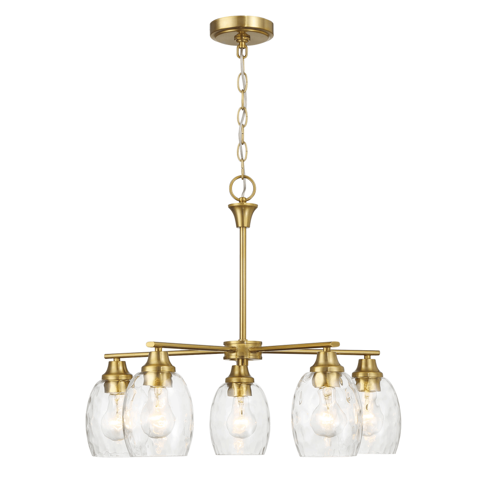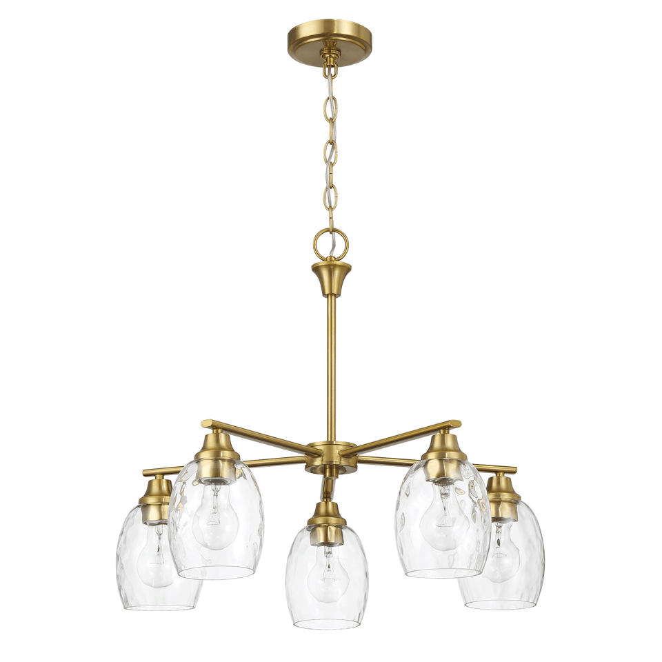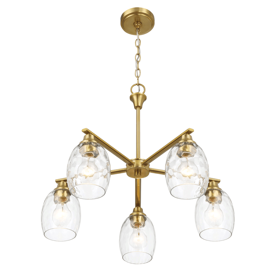 Lampadario Lineare Elegance a Cinque Luci 24"W X 8.5"H Finitura in Ottone Dorato con Pendenti in Vetro Trasparente