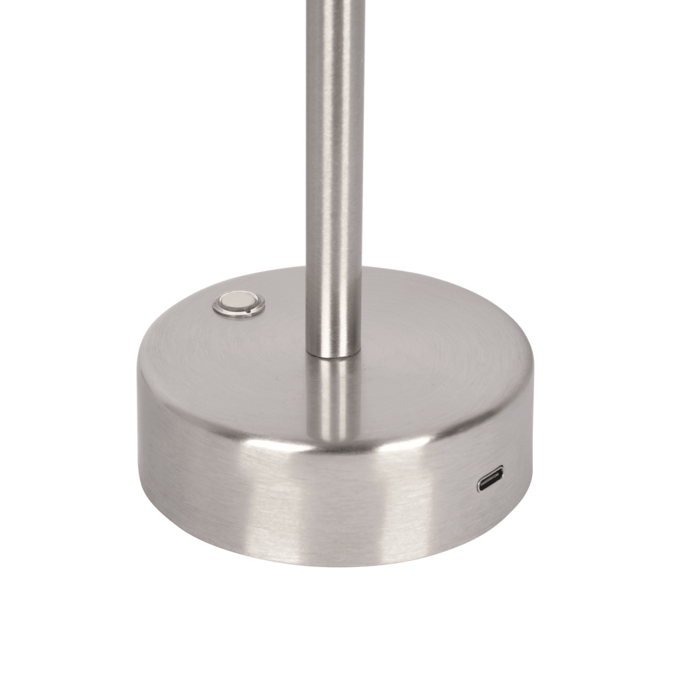 Lampada da tavolo a LED ricaricabile Elegance in nichel spazzolato con interruttore touch a LED