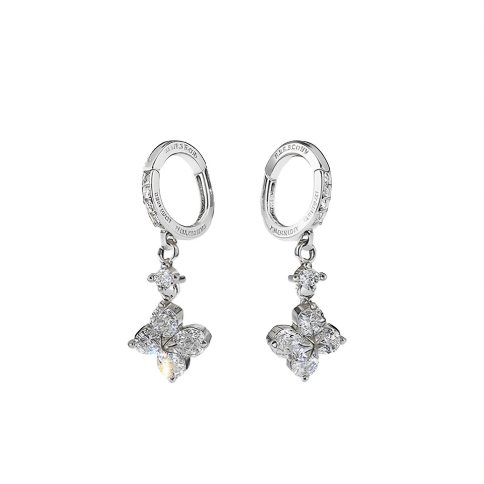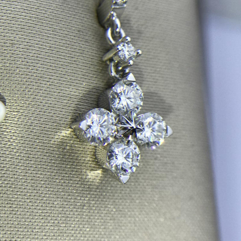 Orecchini Pendenti Eleganti in Oro Bianco con Fiore, Argento 925, Incastonatura a Griffe con Diamanti, Gioielli di Lusso da Sposa per Donna