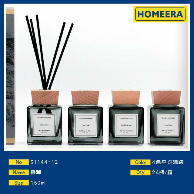 Elegant 150ml Glass Aroma Diffusers Set with Wooden Lid 4 Colors-24 Bottles Per Box
