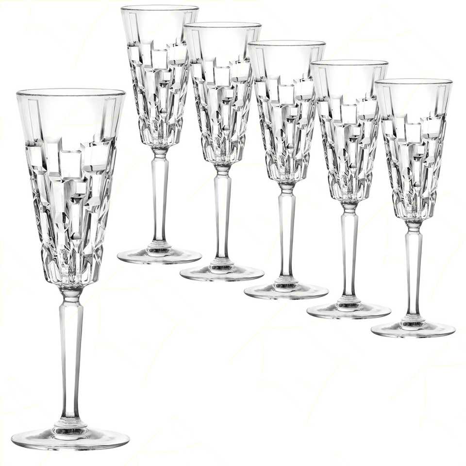 Elegante Set di 6 Flûte da Champagne in Cristallo RCR da 19cl, Calici Scintillanti Etna per Matrimoni e Feste