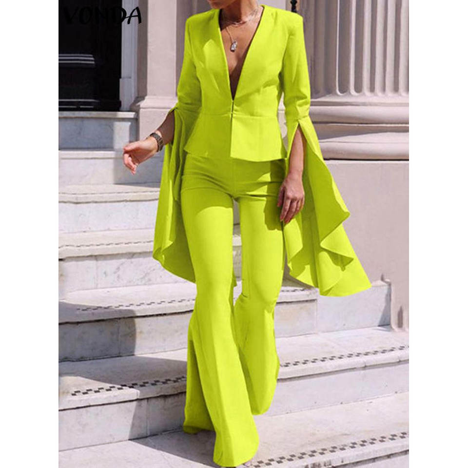 Elegante Completo da Donna 2 Pezzi con Maniche a Campana e Pantaloni a Zampa Lunga