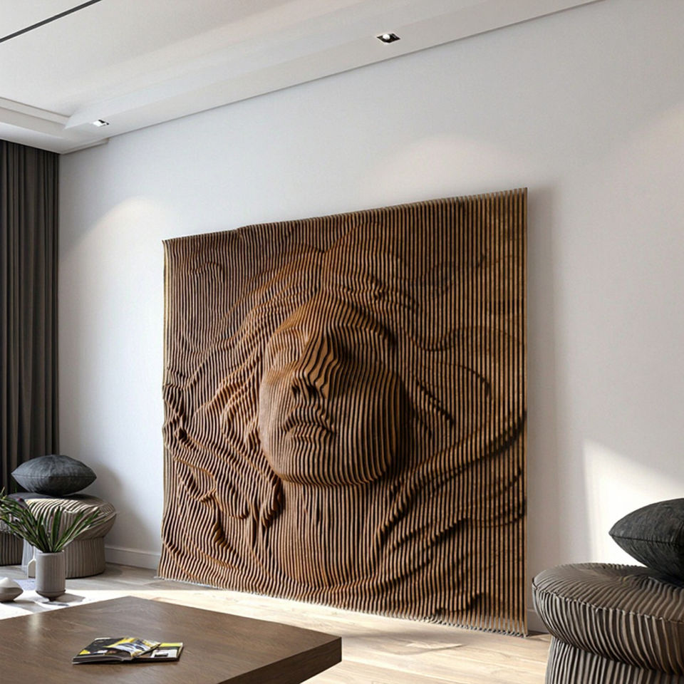 Elegant 3D Parametric Mermaid Wall Sculpture Wavy Wooden Design for Unique Home Decor Living Room Accent Wall Art Wall Hanging