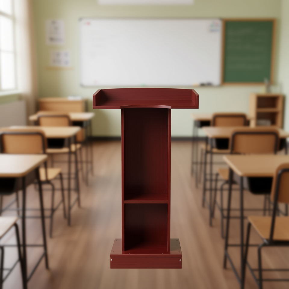 Wooden Podium Stand With Storage Shelf 41 Inch For Classroom School Furniture